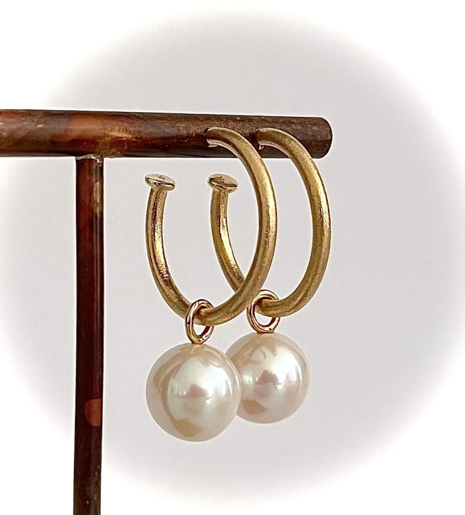 Aurora creol ørestikker med ferskvandsperler ø 10 mm i 14 karat guldvedhæng. Længde ca 26 mm. Kontakt for pris